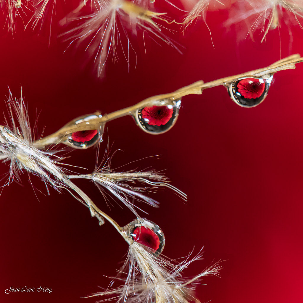 Voici quelques macrophotographies de gouttes d'eau, les unes prises en extérieur, les autres en intérieur.